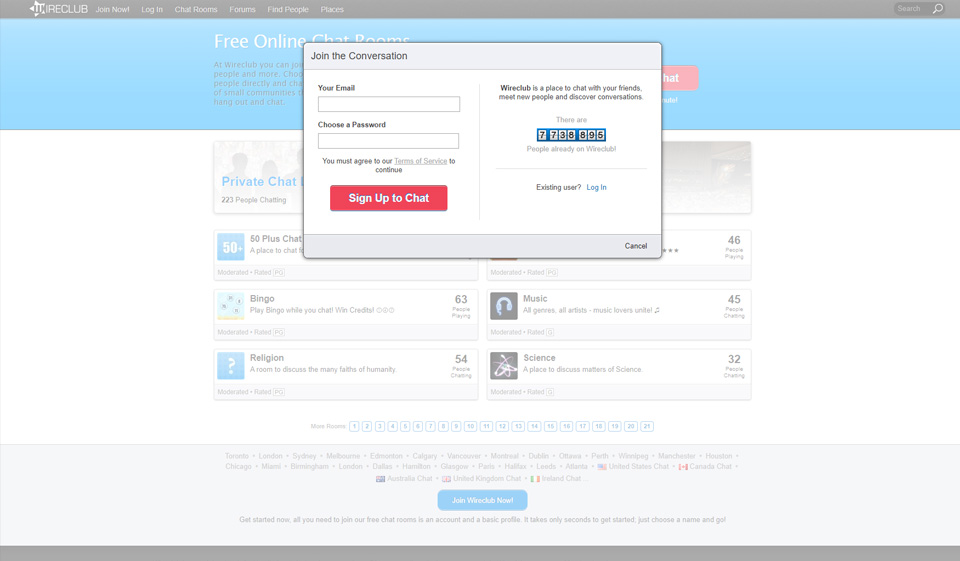 Η διαδικασία εγγραφής δεν είναι καθόλου δύσκολη. Καθώς έρχεστε στο Wireclub, το πρώτο πράγμα που βλέπετε είναι η σελίδα καλωσορίσματος και ένα κόκκινο κουμπί «Εγγραφείτε για συνομιλία». Πατώντας το, μπορείτε να εγγραφείτε στην υπηρεσία. Για να το κάνετε αυτό, πρέπει να δώσετε ορισμένες βασικές πληροφορίες, όπως το email και τον κωδικό πρόσβασής σας. Στη συνέχεια, πρέπει να επαληθεύσετε τη διεύθυνση email σας για να μπορέσετε να εισέλθετε στα δωμάτια συνομιλίας. Όλη η διαδικασία διαρκεί έως και ένα λεπτό και παρέχει στους χρήστες του ιστότοπου πλήρη πρόσβαση στα chatrooms. Για να βελτιώσετε τις πιθανότητες αντιστοίχισης του συστήματος, δοκιμάστε να ανεβάσετε μια φωτογραφία προφίλ. Ωστόσο, το Wireclub.com σάς επιτρέπει να ανεβάσετε μόνο μία φωτογραφία, οπότε καλύτερα να επιλέξετε την καλύτερη.