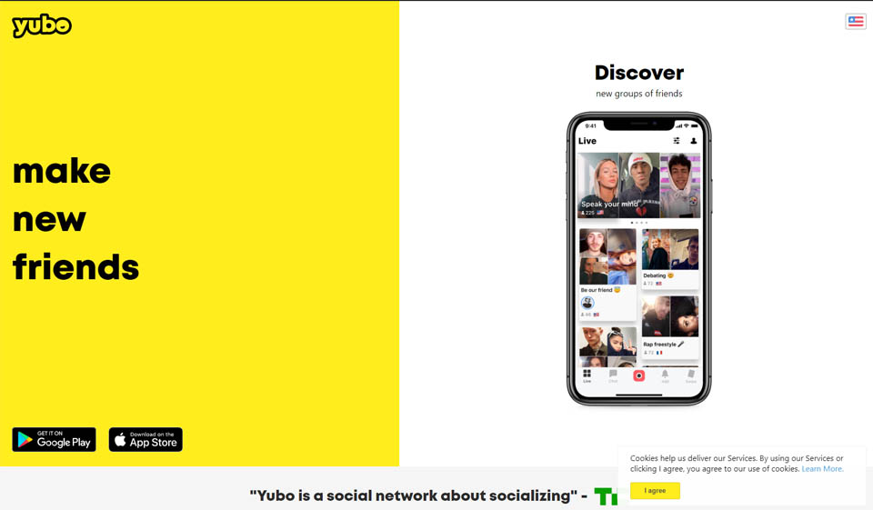 Yubo has a corporate website, with all the information related to the functionality, security, terms, and conditions that can be found. Also, the corporate website is a good place to get in touch with technical support in case there are some questions or issues. All the website visitors can find direct links to the Play Market and App Store, where the Yubo application can be downloaded from with respect to the operating system.